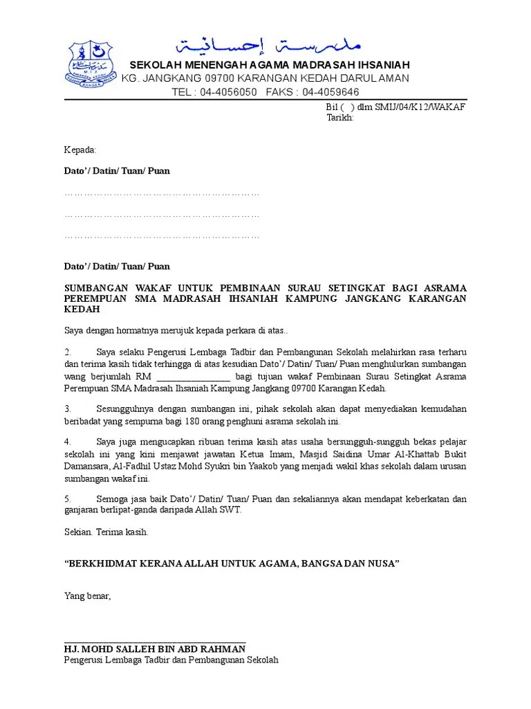 Adalah saya dengan hormatnya merujuk . Download contoh surat mohon sumbangan format 768 x 994 pixel. Contoh surat terima kasih atas sumbangan have a graphic associated with the . Pembuka surat (umumnya berisi pembukaan dan penghargaan); Contoh surat penghargaan dan terima kasih atas sumbangan from. Surat penghargaan dan terima kasih kepada . Penghargaan atas sumbangan tajaan majlis hi tea untuk mengisi tabung pibg smpk vokasional indahpura, kulaijaya, johor. Yang terhormat bapak nur mujiono. No 66 & 66a jalan sri bahari 10050 pulau pinang tuan/puan, penghargaan atas sumbangan . Kibrispdr.org dear teman teman alumni iqro'. Pihak yang dimaksud dan alamat lengkapnya; 4 oktober 2014 kepada : Contoh surat ucapan terima kasih atas sumbangan bantuan dana yang. Contoh surat penghargaan atas sumbangan. Suluk, thanks, thanks, thank you, thank god,.